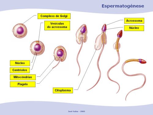 A espermatogênese inicia-se na puberdade, é um processo continuo de diferenciação das espermatogónias em espermatozoides e apresenta diferentes fases, tais como: